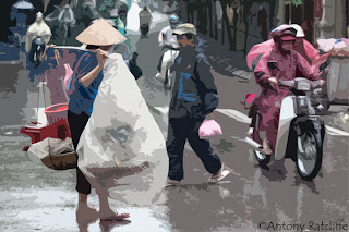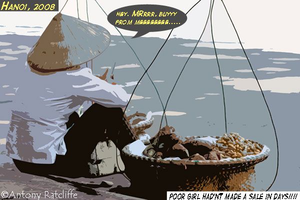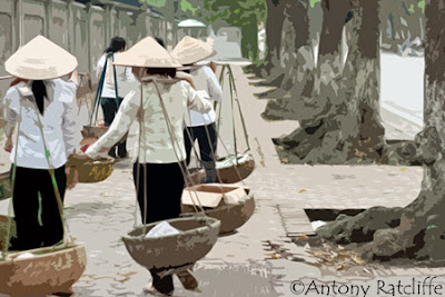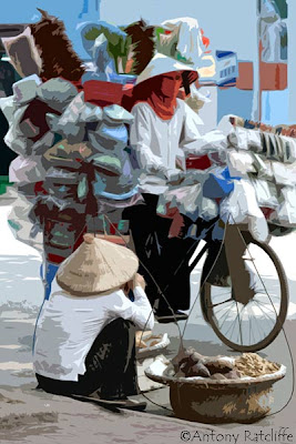 Those on foot tend to sell a lot of vegetables and tropical fruits which they dutifully weigh out on the spot (wherever that may be) by the kilo and slice and dice them if the customer requires. Labels: Asia, Hanoi, Street Vendors, Travel Photography, Vietnam, Vietnamese