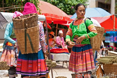 There are places where one can have a bite to eat but not so much at temporary stalls geared up for the job on the day but at small permanent restaurants that are part of the towns makeup. There are sections selling lovely multi coloured ethnic minority clothes and materials, sections selling fresh fruit and vegetables, metalware and bamboo items. An interesting little meat market also keeps the punters busy with a chance to display their shrewd bargaining skills and of course a chance to get there hands dirty as they man handle pieces of raw meat.