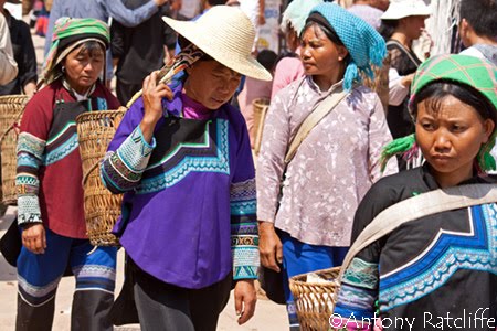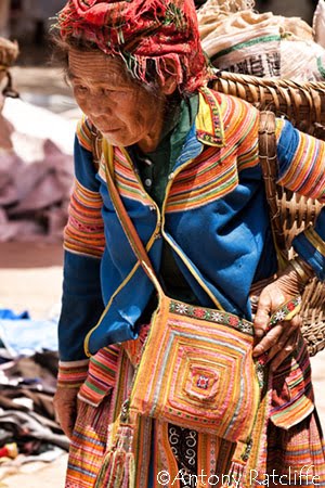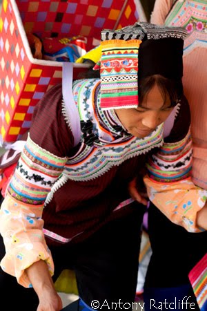 The difference between Loameng and Xiding mentioned in the previous post which is situated in Xishuangbanna prefecture is that there is a lot more space to roam at Laomeng, Xiding in comparison is very compact and quite dense with bodies which is fine if you don't mind rubbing shoulders 'quite literally' with the friendly minority peoples but it is also nice to have some space with which to take in the crowd, to observe what they are doing without your view being hindered. The market takes up almost all of the streets within the town and due to Laomeng being a bigger place than Xiding there are noticebly a few more streets with a wider variety of goods.