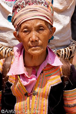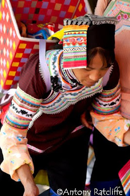 As with most of the Minority Groups it is the females who are the most flambouyant with the men tending to wear quite bland dress in comparison. In a lot of cases this tends to be a simple black outfit of jacket and trousers as can be seen with the Miao man in the picture above, still, they are'nt shy about carrying those hefty bamboo baskets around that are so typical of the tribal peoples.