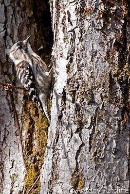 We are quite lucky to be residing in the forest itself, and putting a bit of feed out in the mornings on a daily basis works wonders. Just the other day our feathered friends were out in their multitudes. It's a very peaceful location and devoid of noise from squabbling twitchers so an ideal place for placid birds to pay us a visit. We had a couple of Great Spotted Woodpeckers (Picoides major/Dendrocopos major?) chasing each other around the trees and putting on a colourful vivid dancing display. We had another woodpecker, the Japanese Pygmy Woodpecker (Picoides Kizuki/Dendrocopos kizuki?), so named due to its small size of around 15cm, not as colourful as the Great Spotted Woodpecker but nevertheless a wonder to behold.