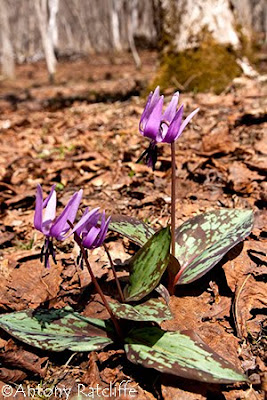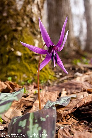 Katakuri starch is known as Katakuriko (片栗粉) but has lately been replaced by potato starch which is a much cheaper alternative. The flowers are very vibrant in a dry leafless forest and contrast superbly against the brown autumn leaves from the previous year. Spring is definitely here in the high places when this plant pops up through it's winter futon of forest detritus.