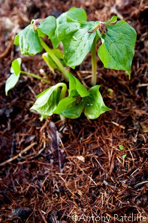 The tri-leaved Trilium smallii or Enrei-Sou in Japanese (エンレイソウ) are also cropping up along the forest streams. This plant is native to regions of North America and Asia. The plant is made up of three leaf like bracts with only one flower being produced per plant. In some states of America it is illegal to pick a Trillium as it seriously injures the plant by preventing the leaf like bracts providing food to the rhizome for the next year and the plant itself can actually take years to recover.