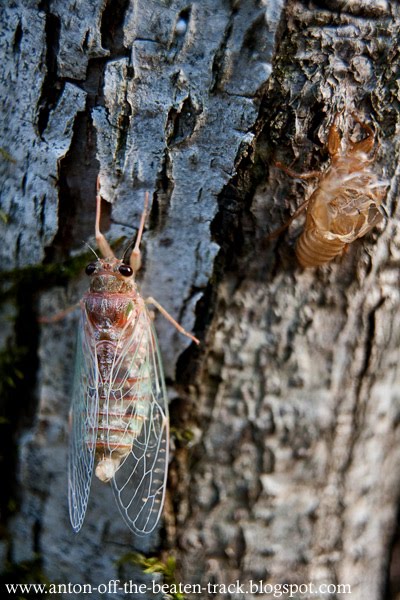 There are roughly 2,500 species of Cicada around the world living in temperate to tropical climates. Ever wondered what that high pitched clicking is in tropical climes? Well that's the Cicada song. And they're a noisy bunch when they get going but I guess they would be as that's their mating call and they only have a couple of weeks to mate before they pass over to the other side after anything from 5 to 17 years living underground! The Cicada that has the 17 year lifecycle is the North American Magicicada.