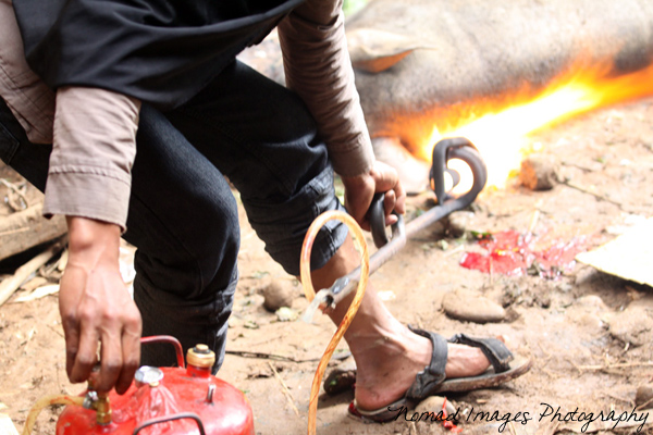 The meat after it has been butchered is freely distributed amongst the local village populace, drink of the alcholic variety such as the natural Tuac is traditionally consumed from huge lengths of Bamboo and a veritable food feast which includes the freshly slaughtered beasts satiates all appetites. Chanting and dancing can also be part of the event.