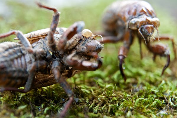 There are roughly 2,500 species of Cicada around the world living in temperate to tropical climates. Ever wondered what that high pitched clicking is in tropical climes? Well that's the Cicada song. And they're a noisy bunch when they get going but I guess they would be as that's their mating call and they only have a couple of weeks to mate before they pass over to the other side after anything from 5 to 17 years living underground! The Cicada that has the 17 year lifecycle is the North American Magicicada.